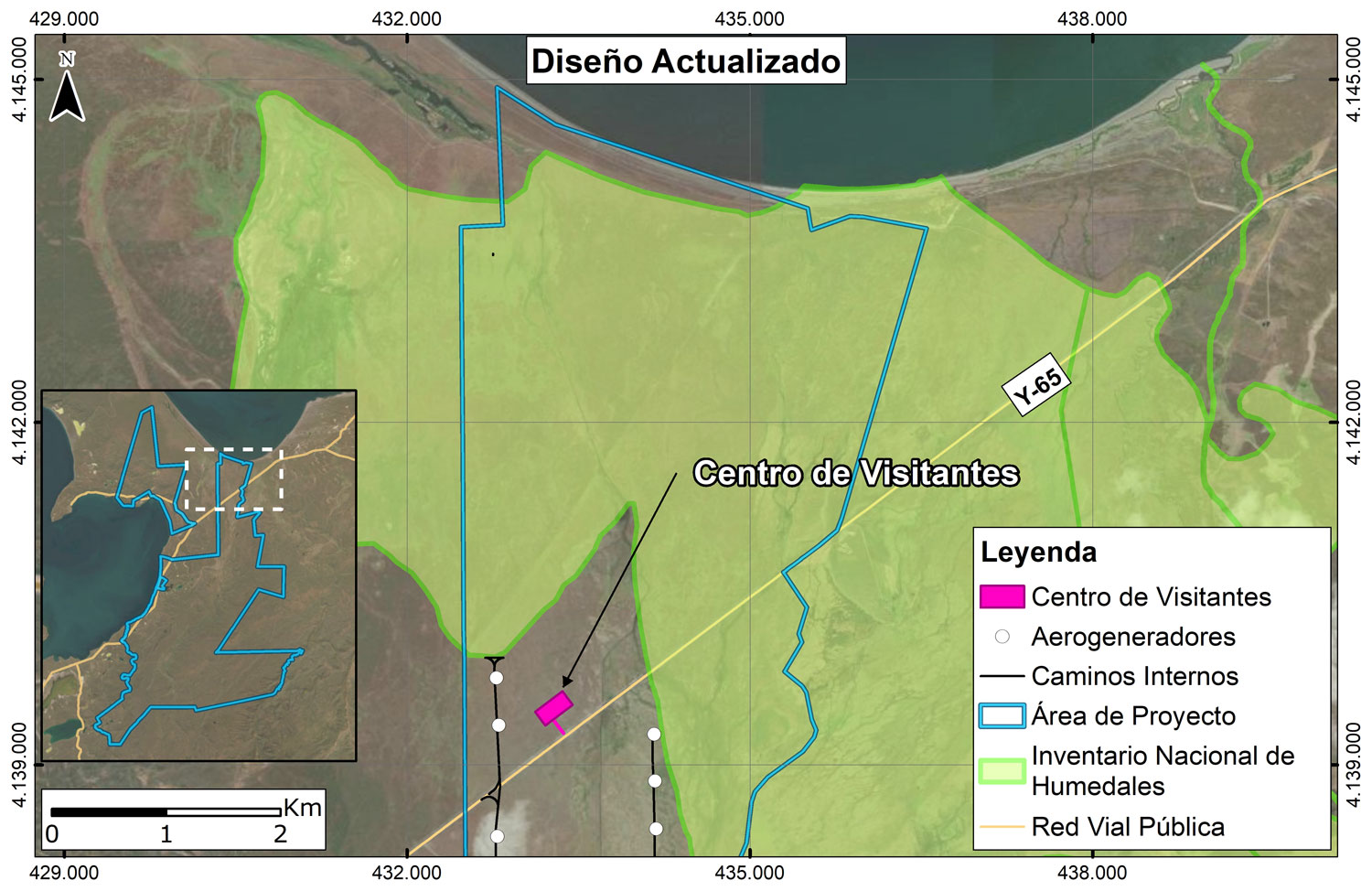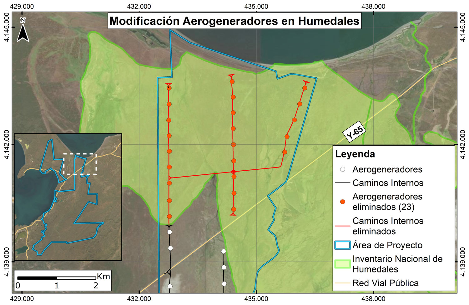 El diseño original del proyecto consideraba la ubicación de 23 aerogeneradores en el humedal AUX-69603 (Inventario Nacional de Humedales), ubicado entre Bahía Gente Grande y Bahía Felipe, dentro de la comuna de Primavera. La revisión de la normativa legal vigente y los estudios de línea de base realizados en este sector, concluyeron la factibilidad de instalar estos aerogeneradores. Sin embargo, durante el proceso de Participación Ciudadana Temprana (PCT), accediendo a lo manifestado por la comunidad, se procedió a eliminar dichos aerogeneradores; modificando así, el diseño original del proyecto Gente Grande.